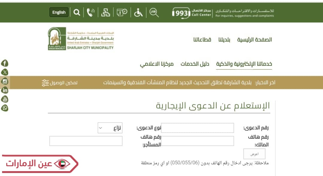 - الدخول إلى خدمة الاستفسار عن القضايا الإيجارية بلدية الشارقة “من هنا“.